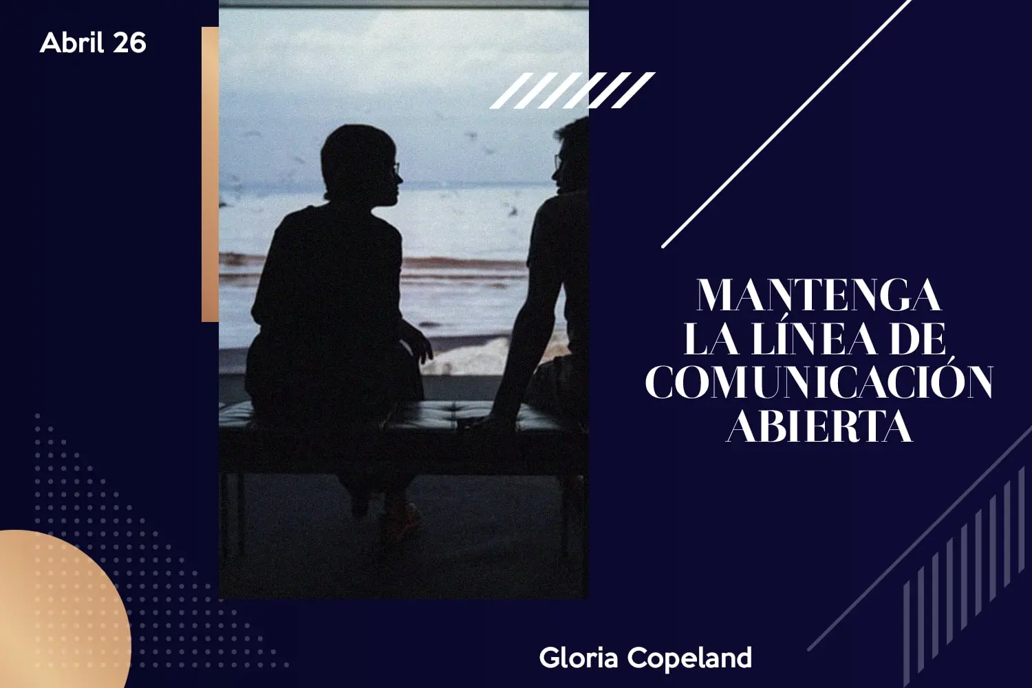 Pienselo, ¡la victoria constante depende de una sola clave! No necesita memorizar una lista que le indique qué hacer y qué no, sino conservar ese fluir en una comunión viva y continua con Dios. Él siempre le habla a nuestro corazón, por medio del Espíritu Santo que reside en nuestro interior. Sintonice su oído a Su frecuencia y alinee su corazón a Su Palabra. Sólo mantenga la línea de comunicación abierta.